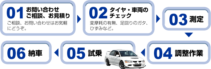 これらの角度を適正な状態に調整することを【四輪アライメント調整】と言います。